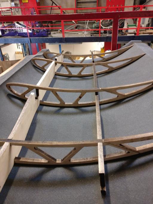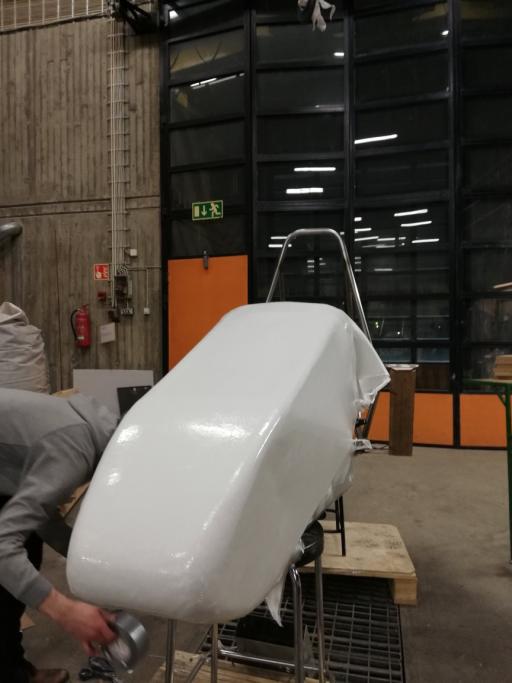 Viime viikonloppuna (kuten todennäköisesti tästä lähtien joka viikonloppuna) myös kasattiin uusia kuitukomponentteja Kevran hiili- ja lasikuiduista. Toissa viikonloppuna oli vuorossa takasiipi, ja viime viikonloppuna keulakartio. Käytimme näppärästi vanhaa keulakartiota pohjalla, sillä tuo pyöreä geometria on todella hankala saada aikaiseksi ilman hirveää työtä muottien kanssa. Säästettiin siis kymmeniä tunteja ja paljon koneistusta ja hiomista tällä metodilla!