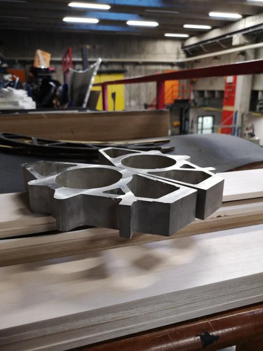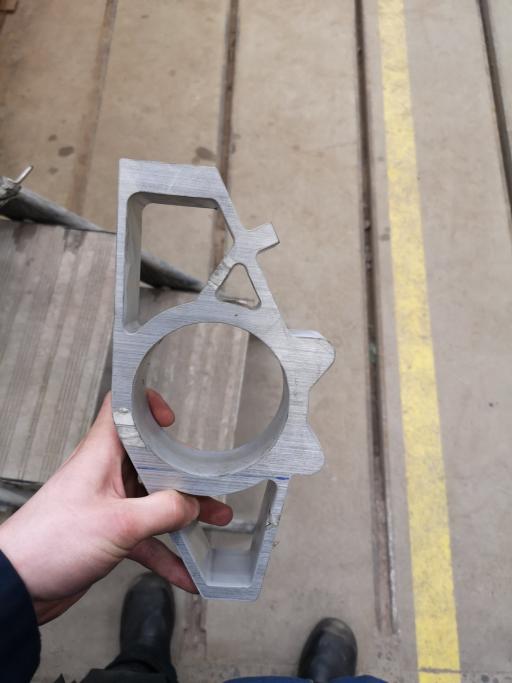 Alkuvuonna suunnitelmat alkaa olla suunniteltuna, ja oli aika siirtyä kirjaimellisesti sorvin ääreen. Kevät onkin superkiireistä aikaa FSO:lle vesileikata, hitsata, kuiduttaa, koneistaa, laserleikata ja kaikkea siltä väliltä. Yksi haasteellisimmista osista valmistaa on esimerkiksi olka-akselit, jotka vaativat monimutkaisen koneistuksen ja yliopiston konepajan henkilökunta onkin auttanut olan puuhamiehiä Joukaa ja Sakkea valmistuksessa. Olka-akselit valmistetaan Sah-Kon alumiinista vesileikkaamalla ja koneistamalla.